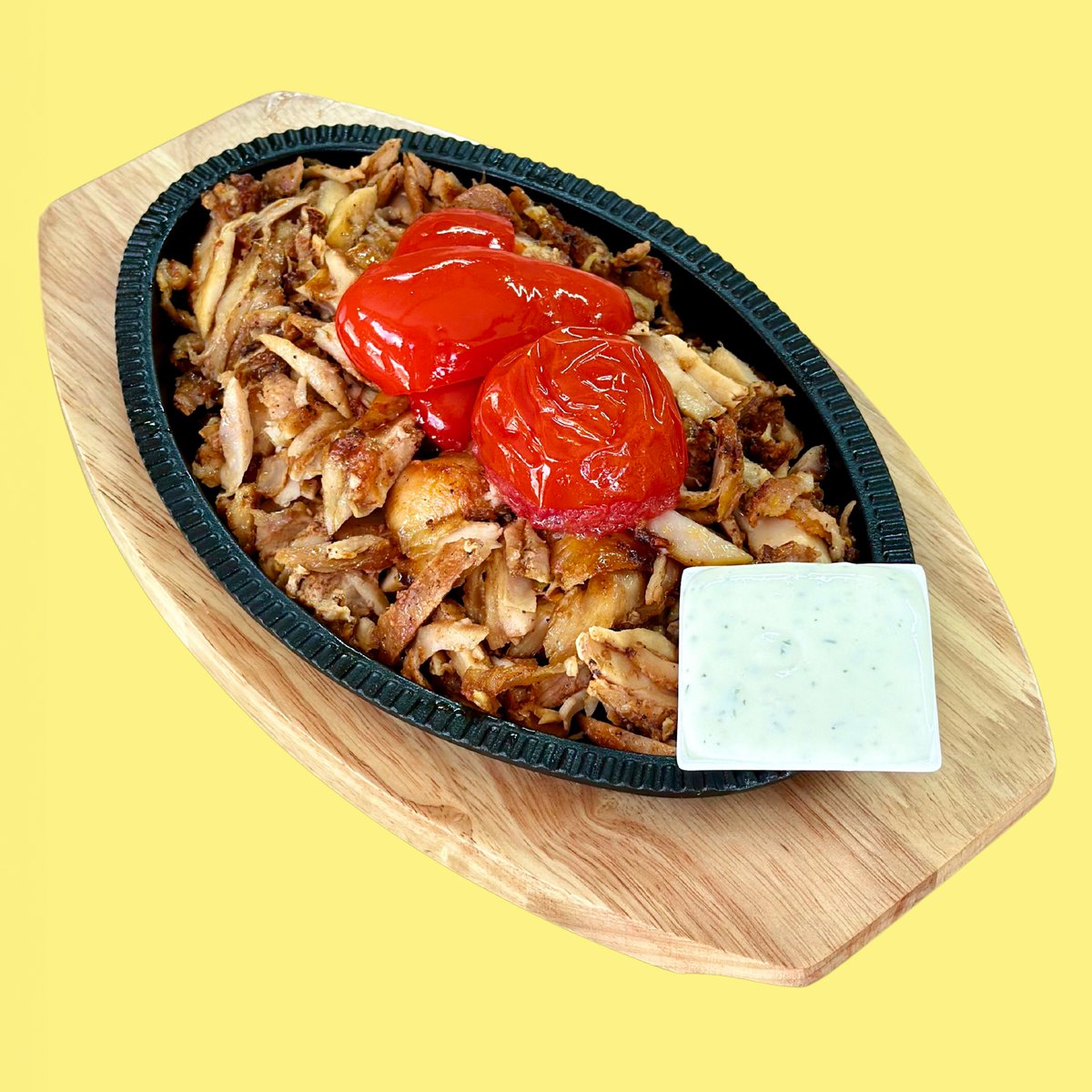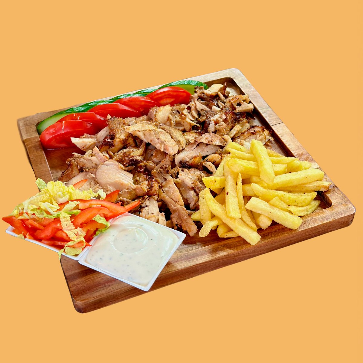 Свежеиспеченная лепешка, халяль филе сочное, нежное и ароматное, прожаренное хрустящее снаружи и сочное, мягкое, с насыщенным вкусом внутри, авторский вкуснейший соус, свежие помидоры и огурцы, картофель