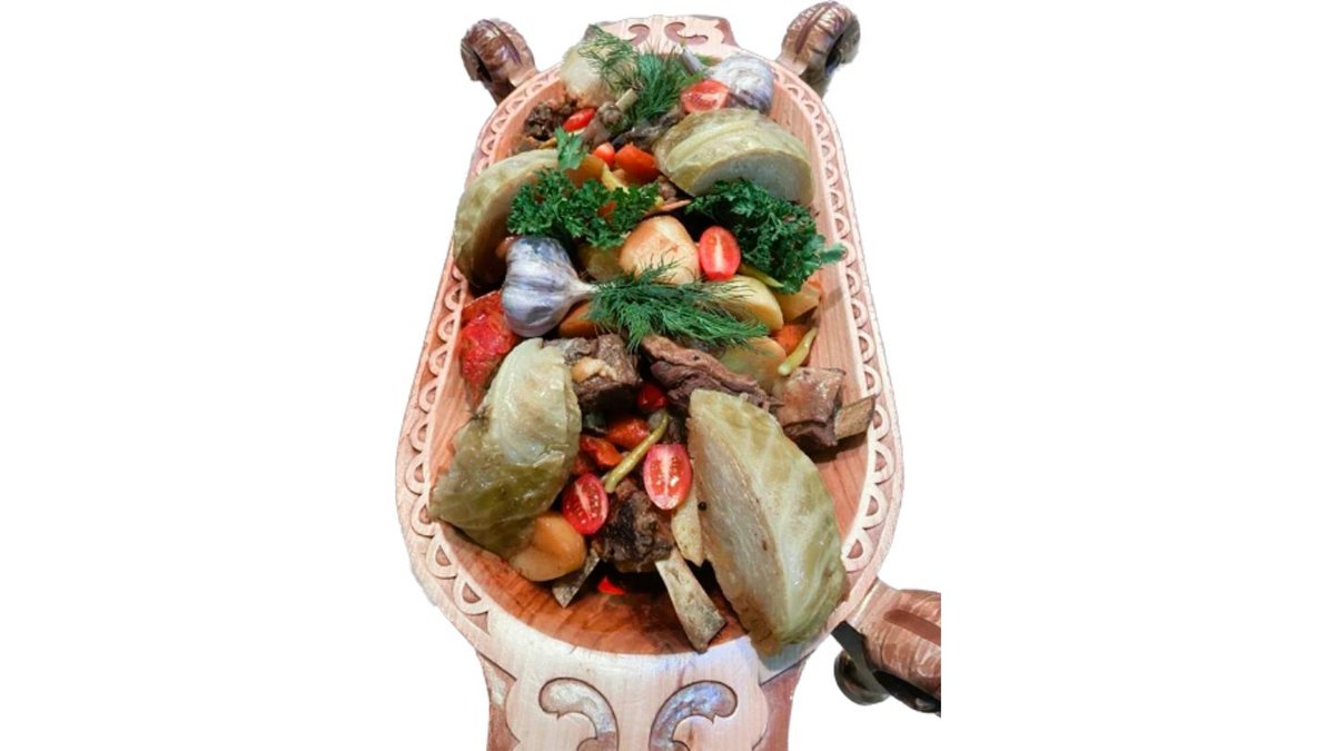 Нежное мясо конины, тесто, " казы, шужук ".Это изысканное блюдо несет в себе богатство вкусов и традиций казахской кухни.600гр