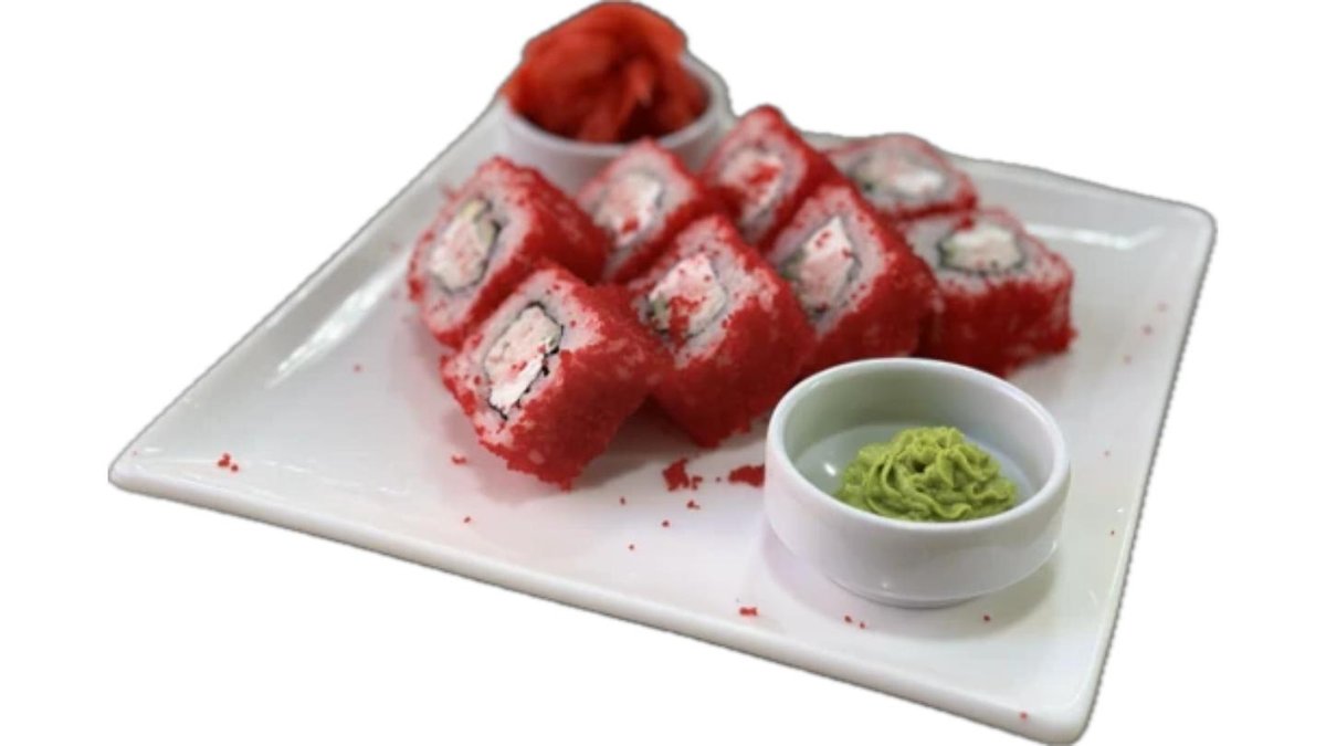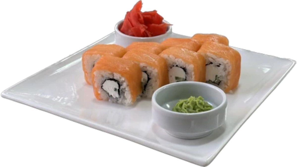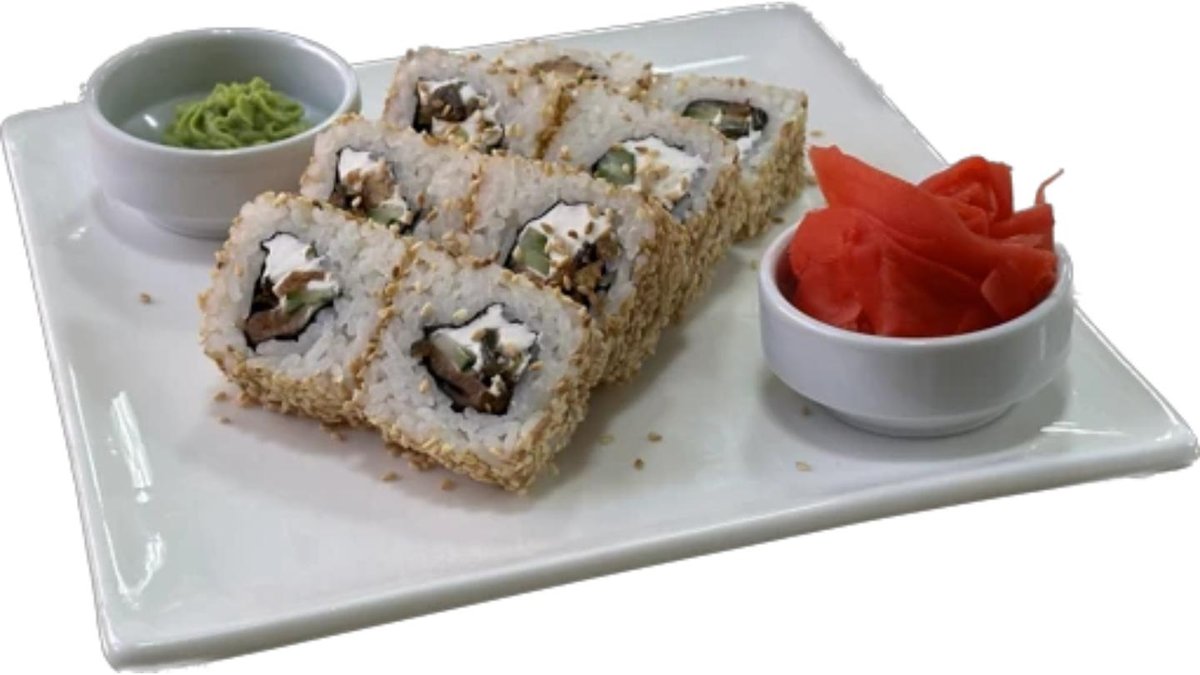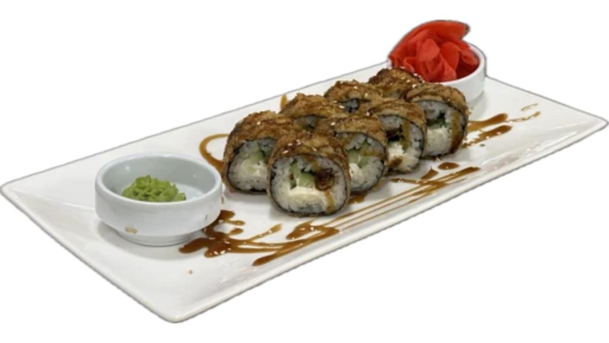 Угорь, семга, рис, креметта,огурец, кляр теппура, нори