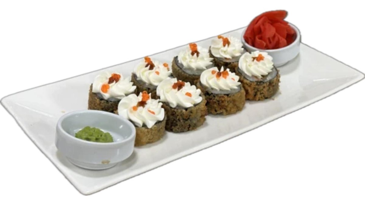 Лосось, креметта, нори, темпура кляр, рис
