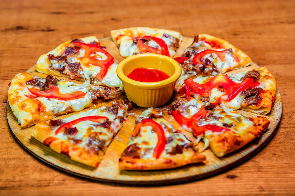 Пицца Донер — это удивительное сочетание традиционной пиццы и ярких вкусов восточной кухни. Основа пиццы — тонкое, хрустящее тесто, пропитанное ароматным фирменным соусом, который придаёт каждому кусочку неповторимый вкус и глубину. На ней щедро рассыпаны тонкие, ароматные кусочки донерного мяса из мраморной говядины, которое тает во рту, раскрывая насыщенный мясной вкус с лёгкими специями. К мясу добавляются свежие сладкие ломтики паприки, которые придают блюду яркость и лёгкую сладость, а плавящийся сыр моцарелла нежно покрывает все ингредиенты, делая их гармоничными и сочными. Дополняют эту вкусовую симфонию маслины, кукуруза и шампиньоны, которые вносят в пиццу лёгкую пикантность и сладковатую нотку, а грибочки придают дополнительную текстуру и вкус. Каждое сочетание на этой пицце наполнено теплотой и насыщенностью, создавая идеальный баланс. Пицца Донер — это не просто блюдо, а настоящий праздник для гурманов, где каждая деталь добавляет новый оттенок, превращая её в гастрономическое произведение.