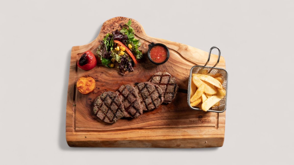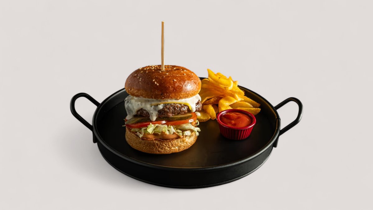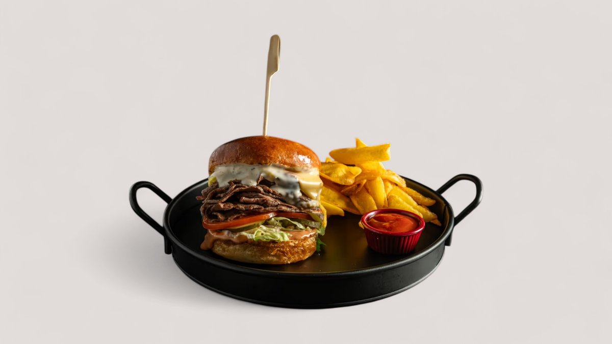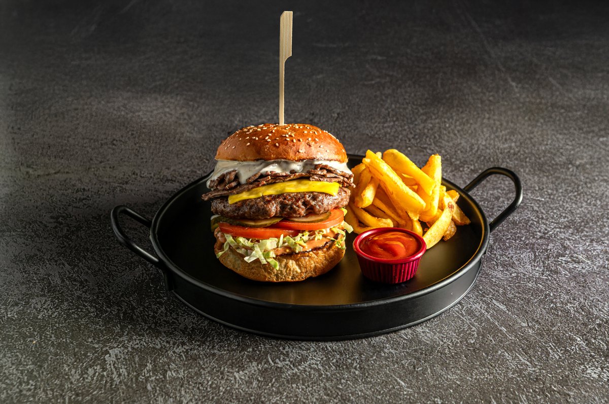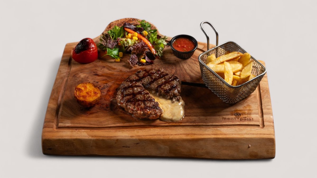 Double Meat бургер — это идеальный выбор для настоящих мясоедов, ценящих насыщенные и полноценные вкусы. В его основе большая сочная котлета и самые вкусные вырезки из говядины, каждая из которых тает во рту, раскрывая богатство мяса с неповторимым, нежным вкусом. Сочный и плотный, бургер наделён потрясающей текстурой и глубиной, благодаря каждой котлете, приготовленной до идеальной степени прожарки. Свежие овощи — ломтики томатов, хрустящие листья салата и аппетитные огурцы — придают блюду лёгкость и яркость, добавляя сочности и свежести к каждому укусу. Но настоящим акцентом этого бургера становится двойной слой сыра Чеддер, который плавится, обвивая мясо и овощи своей насыщенной кремовой текстурой, придавая всему блюду уникальную богатую нотку. Булочка, в которую завернуты все эти ингредиенты, — домашняя, воздушная и мягкая, с лёгким золотистым оттенком, идеально удерживает начинку, не теряя своей пышности. К этому бургеру подается гарнир — картофель фри, хрустящий и аппетитный, и нежный белый соус, который придаёт блюду дополнительную сливочную нотку и завершает вкусовую картину. Этот бургер — настоящий гастрономический дуэт, который подарит вам истинное наслаждение от каждого укуса.