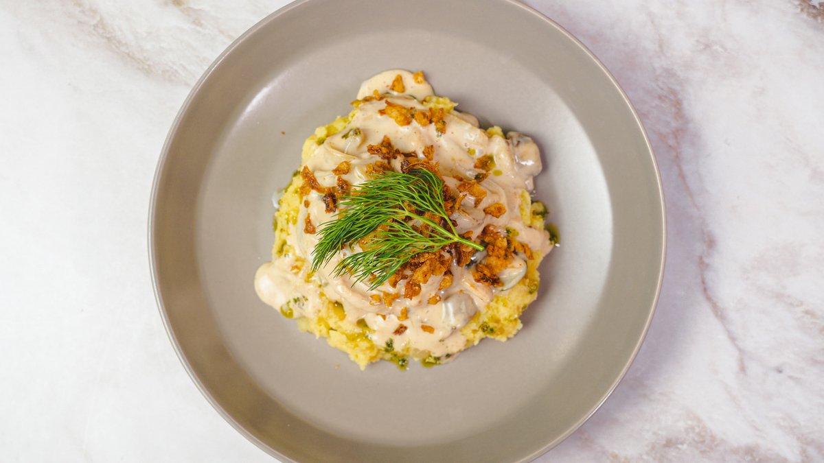 Котлеты с пюре в сливочном соусе (курица)