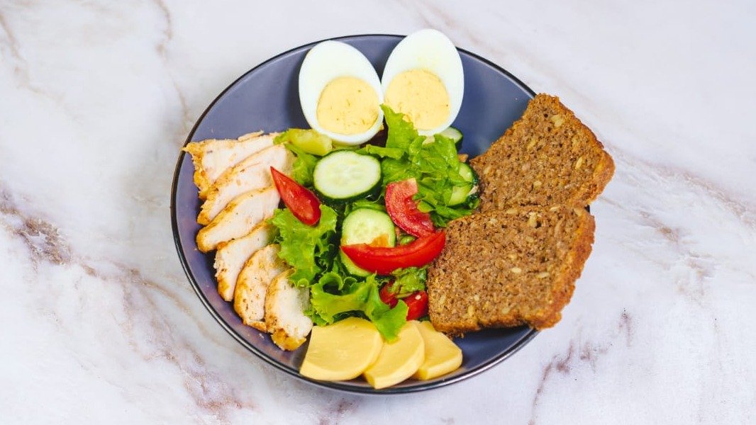 яйцо, куриное филе, салат, сыр, хлеб злаки