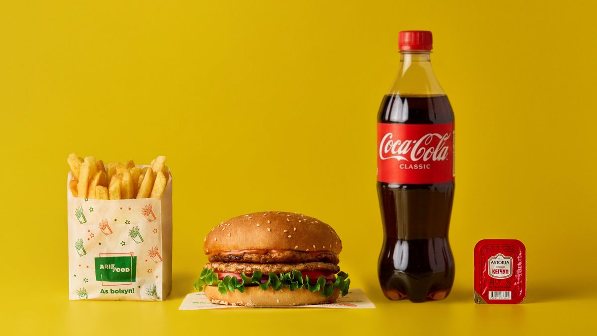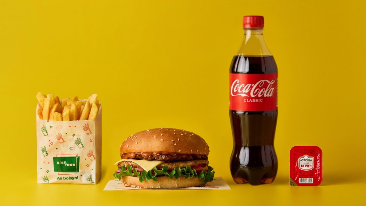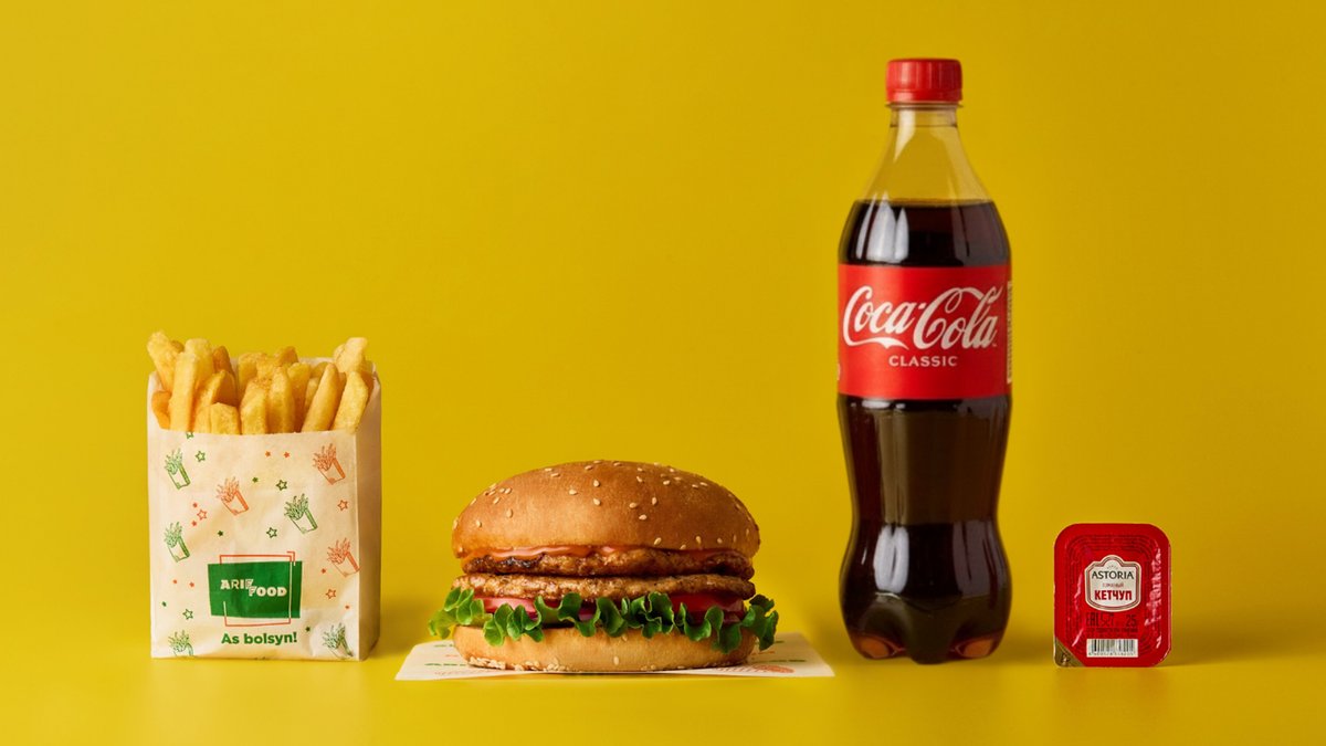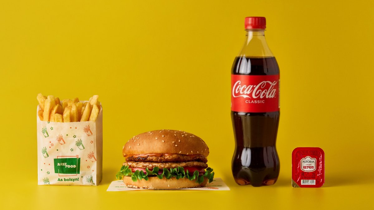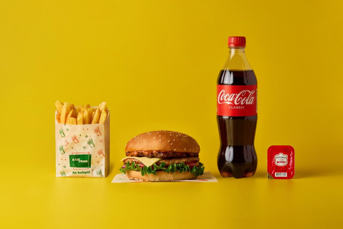 Гамбургер говяжий двойной, фри, напиток 0,5 на выбор, соус на выбор