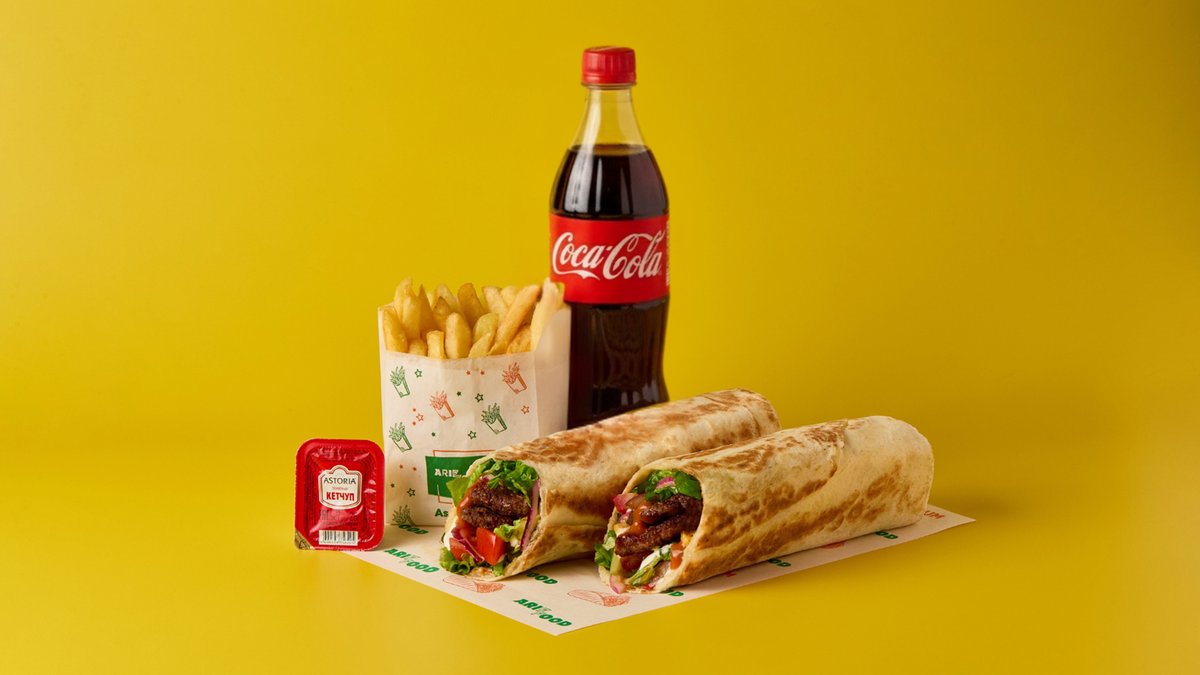 ДУРУМ ГОВЯЖИЙ С Х2 МЯСОМ КОМБО С АЙРАНОМ