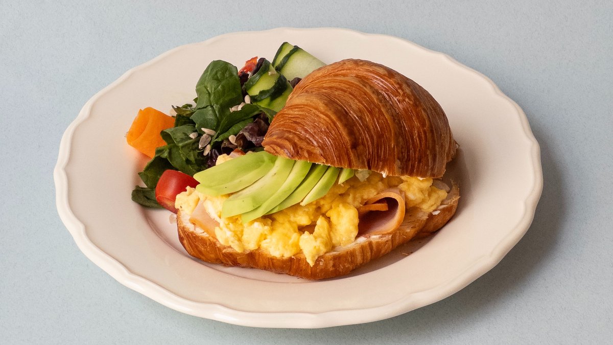 Круассан, индейка, авокадо, скрембл, микс салата