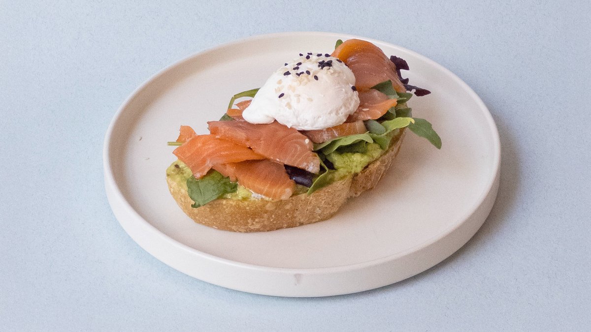 Тартин, гуакамоле, лосось, пашот