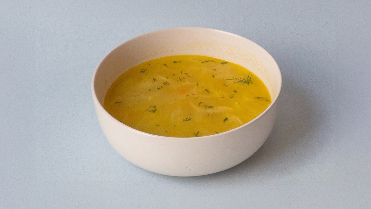 Куриный бульон, куриное мясо, лапша, яйцо