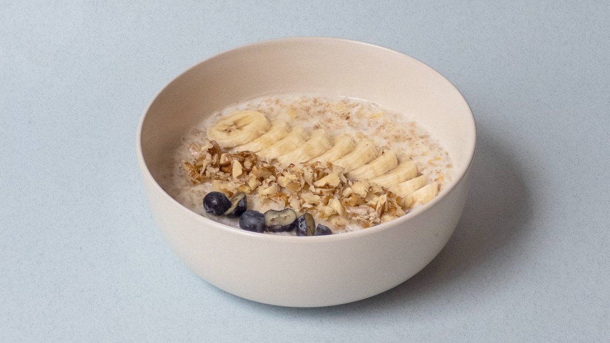 Овсяная каша, банан, грецкие орехи, голубика