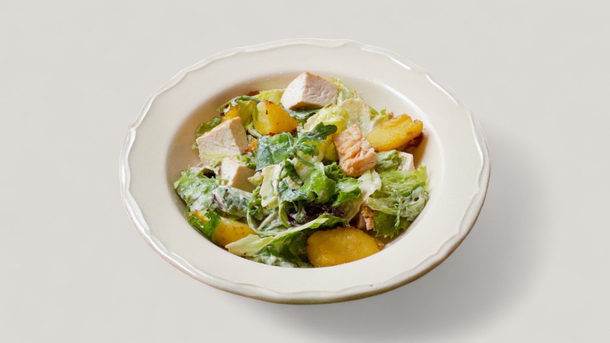 Куриное филе, картофель, микс салата, сливочный соус