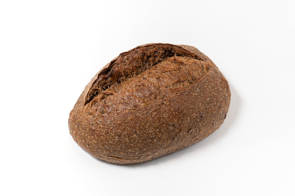 Классический итальянский деревенский хлеб на натуральной закваске с добавлением солода, семян льна, оливкового и растительного масла холодного отжима. Форма может отличаться от фото