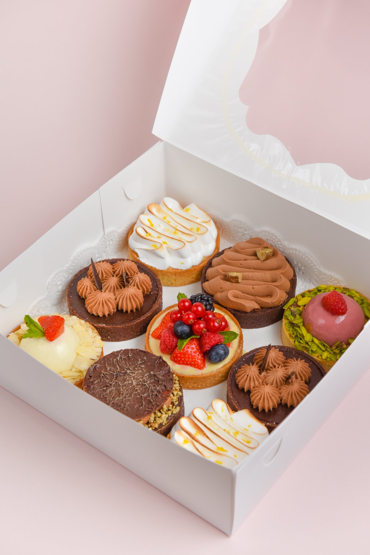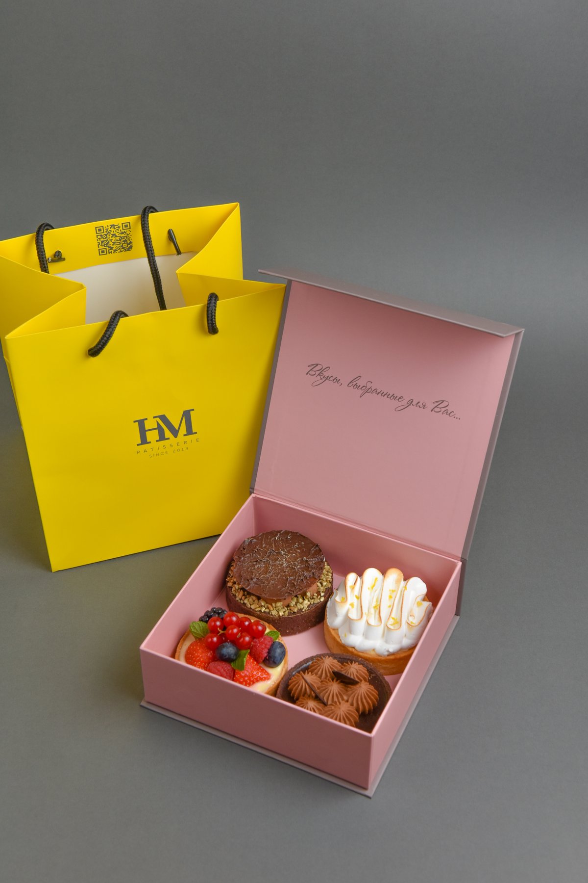 Тарталетки ассорти 4 шт, брендированные пакет и коробочка 16*16*5