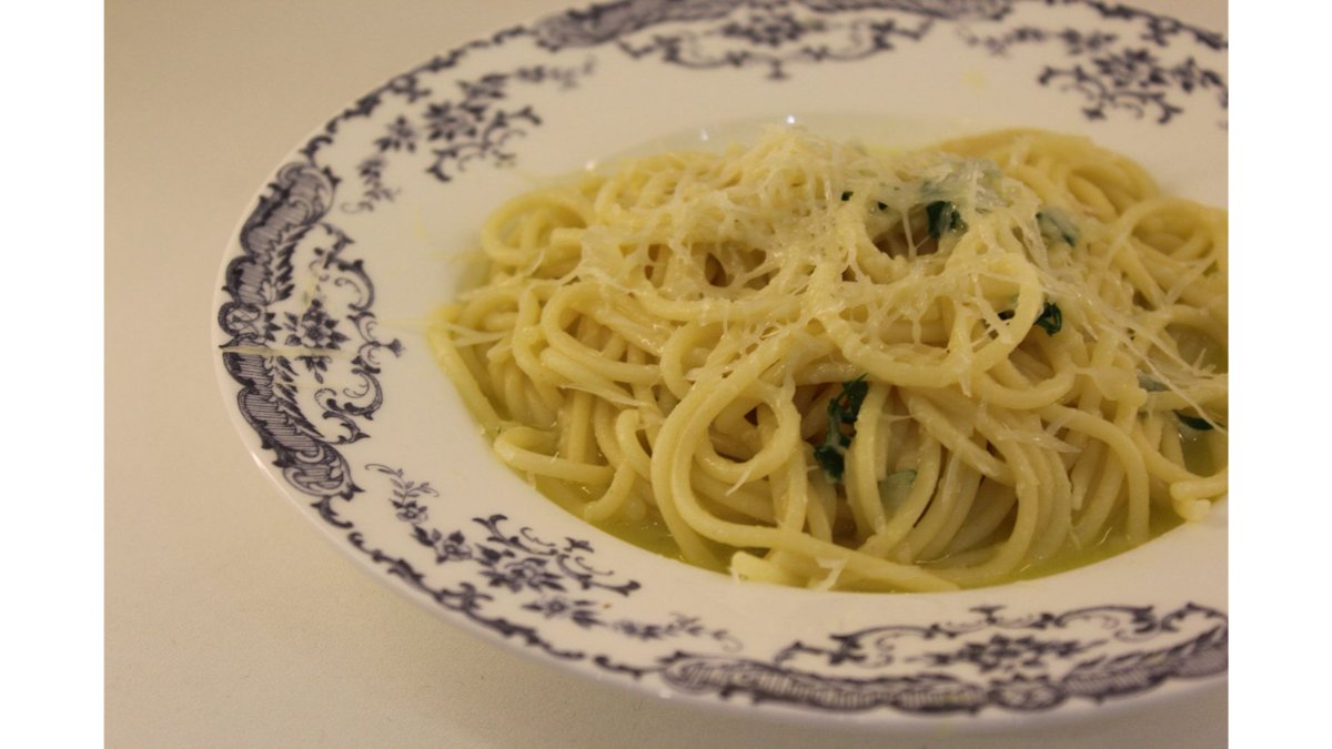 Спагетти, оливковое масло, чеснок, перец чили, петрушка