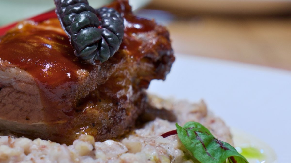 Duck with berry sauce. A contrast of sweet and salty delight