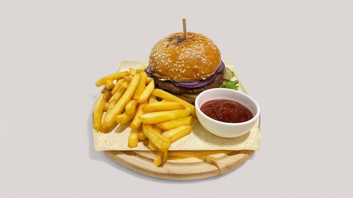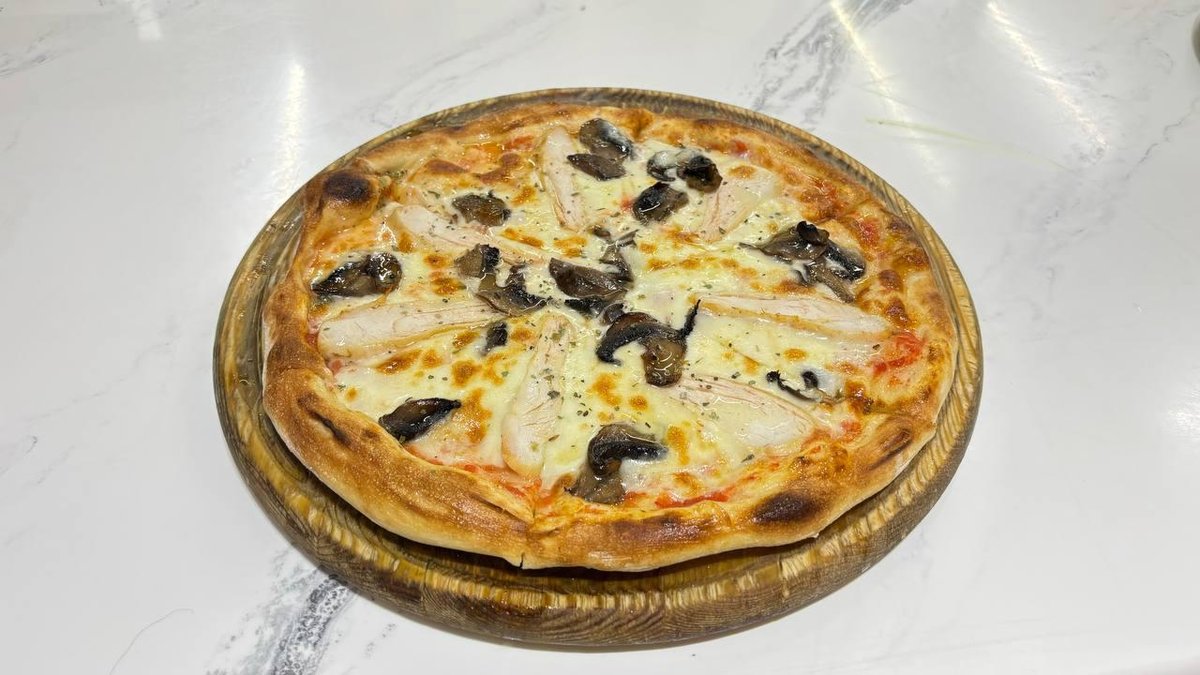 Говядина обжаривается с грибами шампиньонами, луком, чесноком и петрушкой. Подается с томатным соусом.