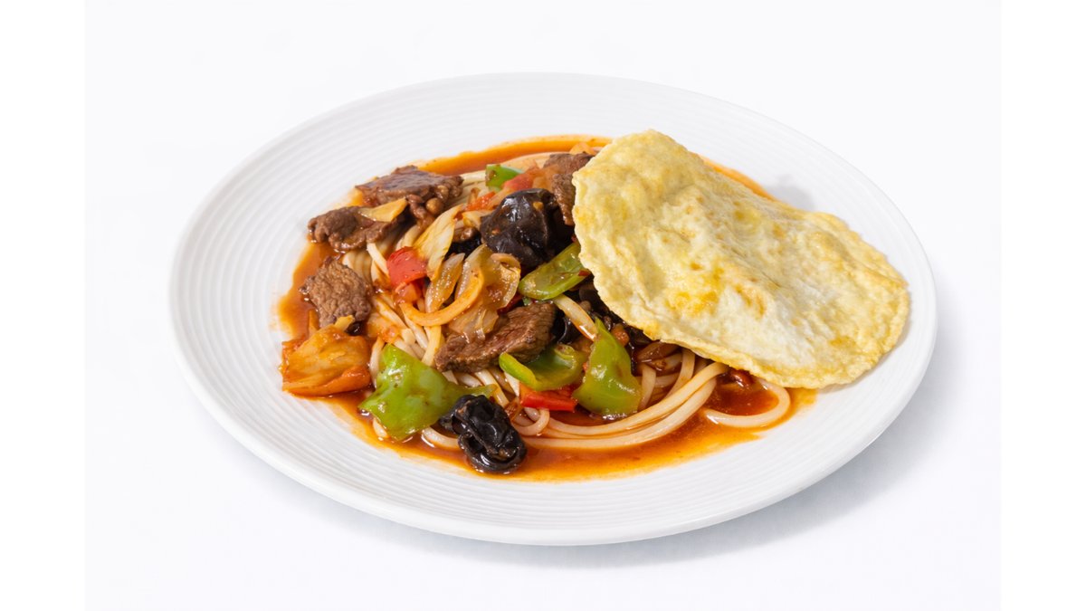 Hand-pulled noodles with juicy meat, vegetables, and wood ear mushrooms in a signature sauce.