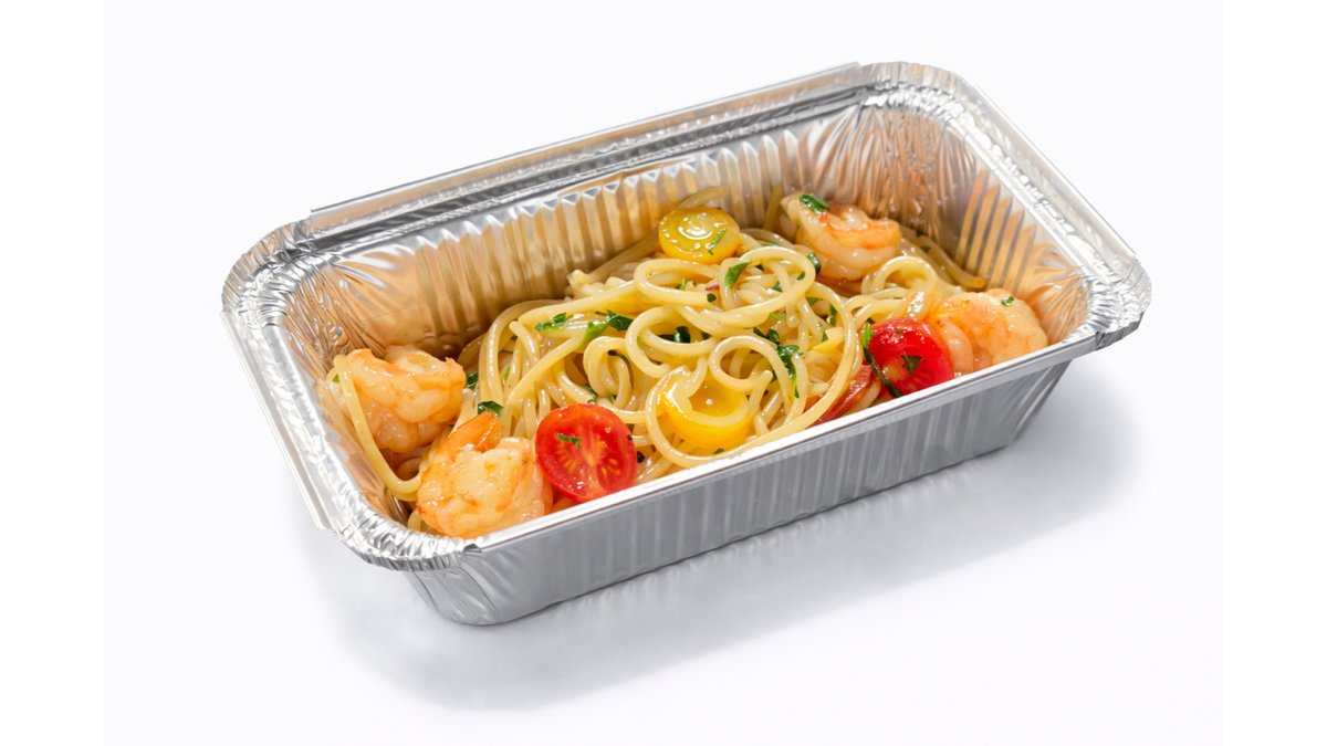 Pasta with olive oil, garlic, and juicy tiger prawns. Light and aromatic.