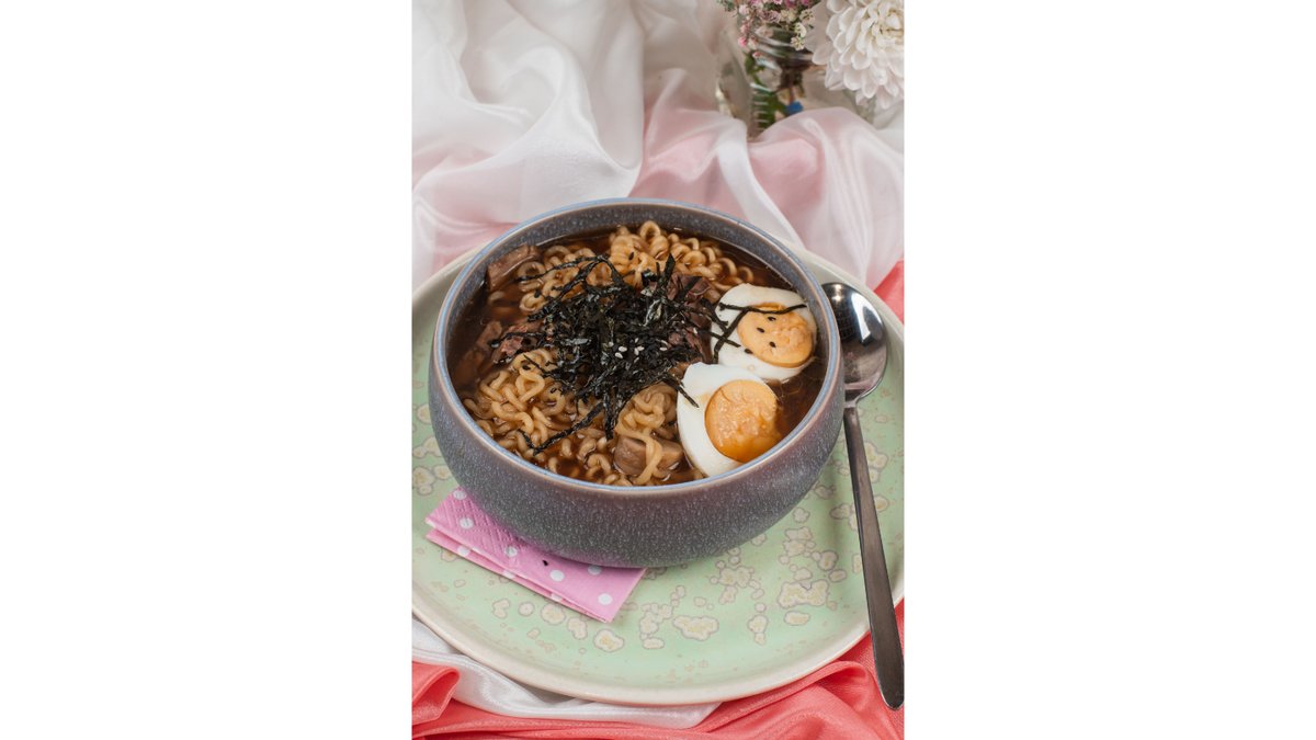 Лапша, говядина\курица, яйцо, эноки, шампеньоны, нори