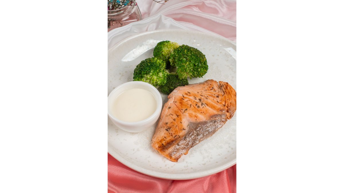 Лосось жаренный, с брокколи, со сливочным соусом