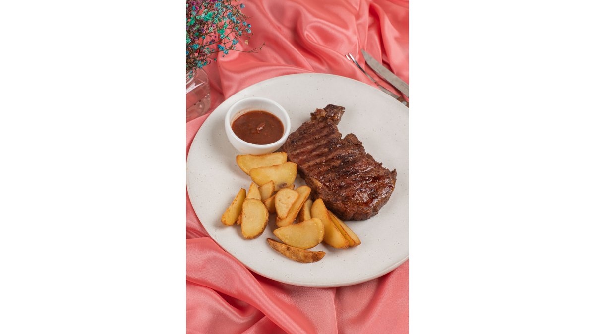 Стейк Рибай с картофельными дольками и соусом