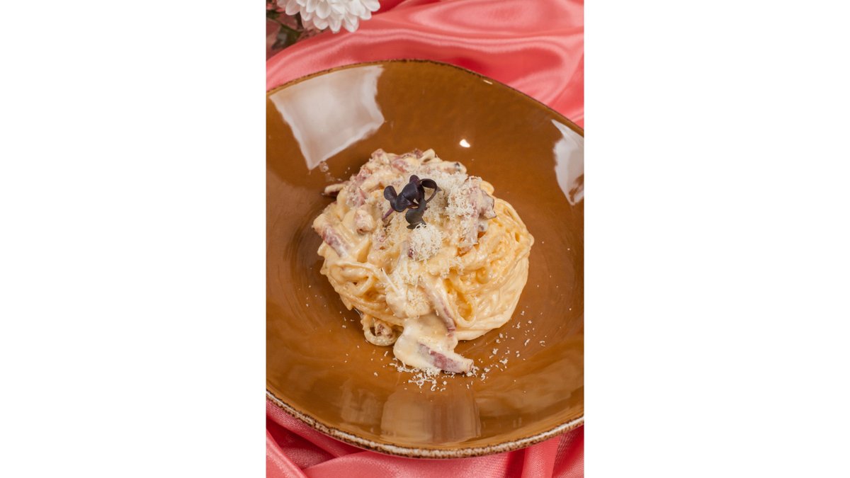 Спагетти, сливочный соус, корбонара
