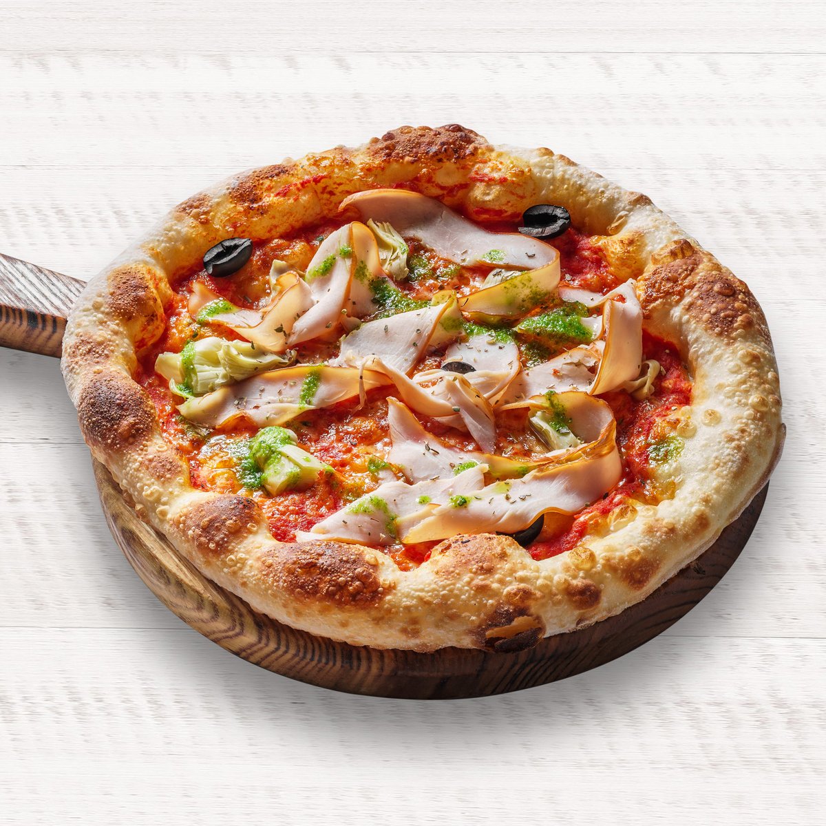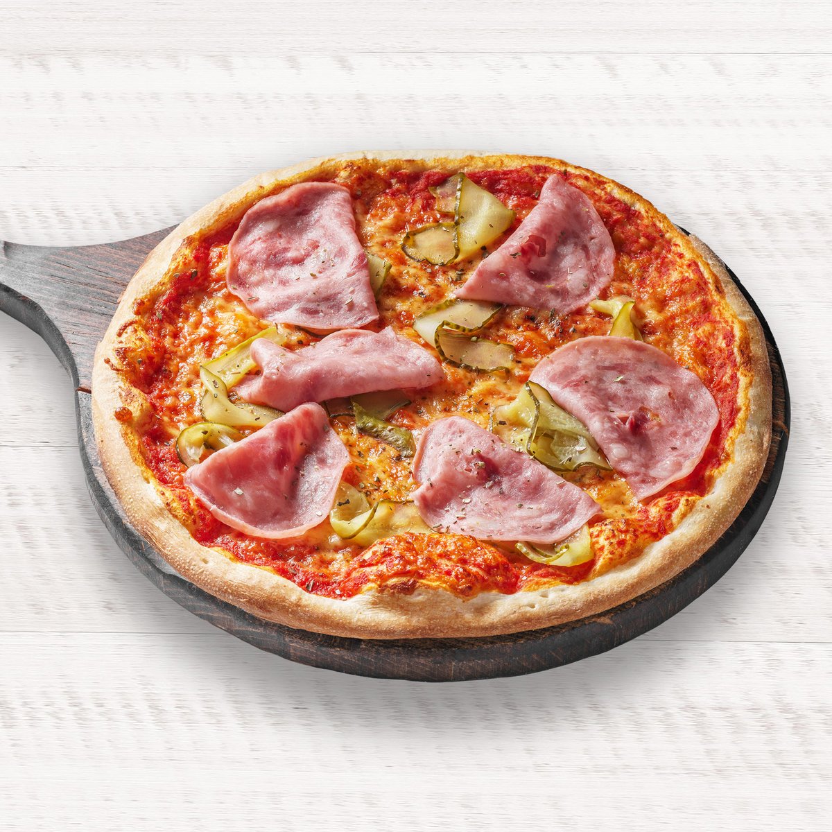 Пикантные колбаски Пеперони, свежие томаты, маслины, каперсы, сыр Моцарелла и соус Помадоро.