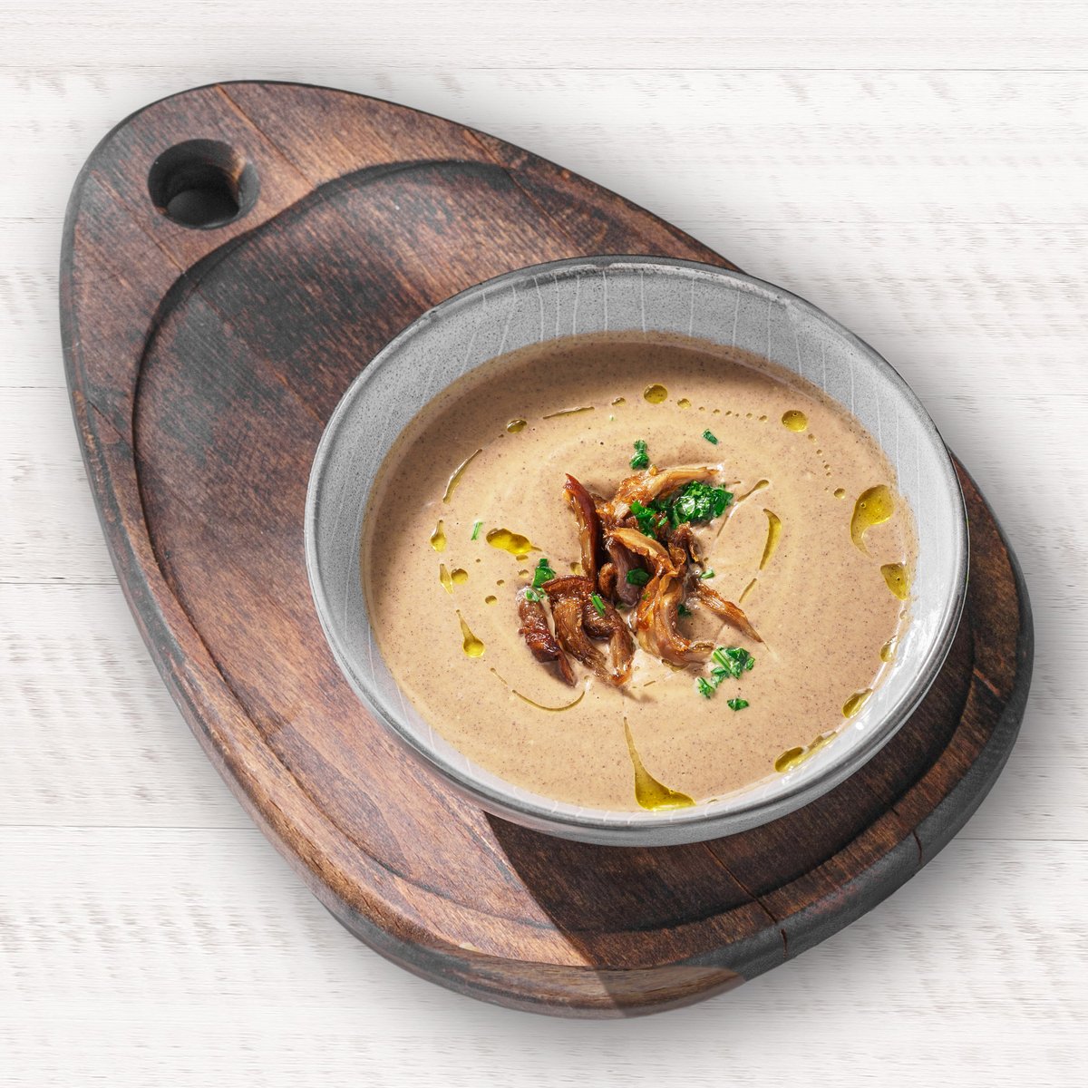 Грибной крем-суп на курином бульоне с жареными вешенками
