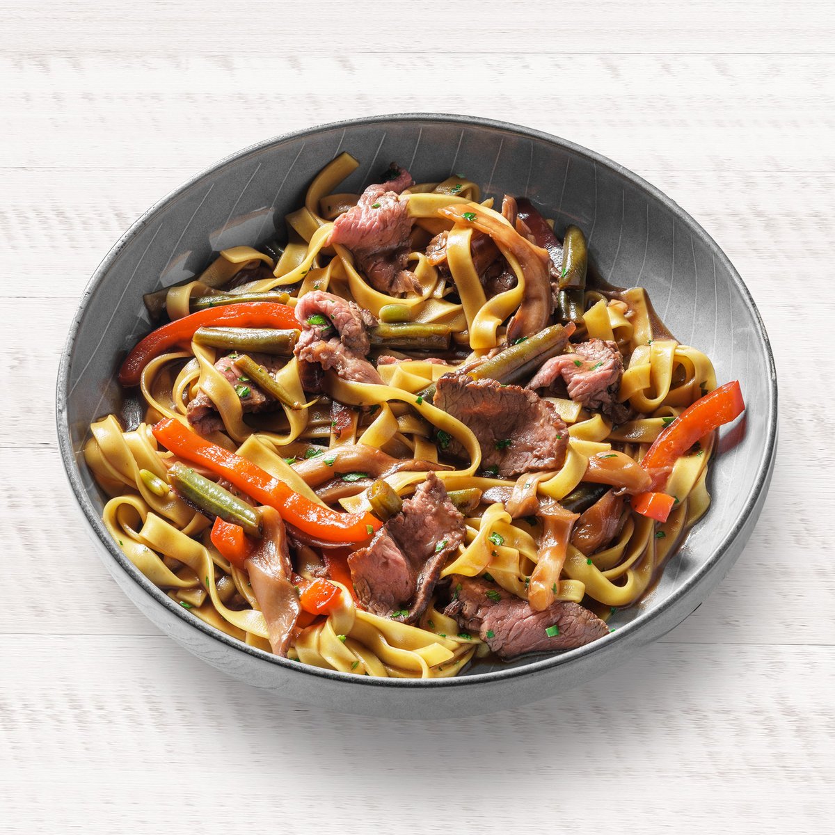Ароматный овощной суп с говядиной, запеченной с итальянскими травами, бальзамическим уксусом и свежим базиликом