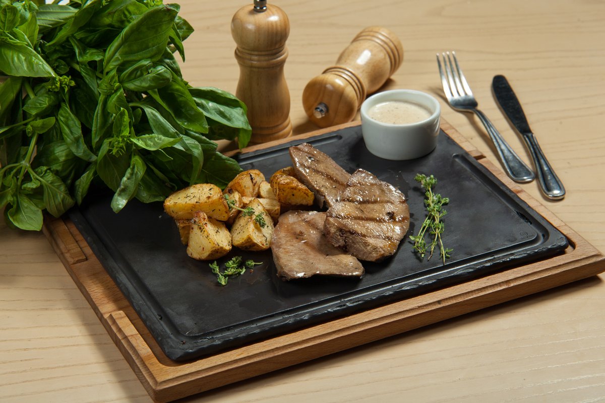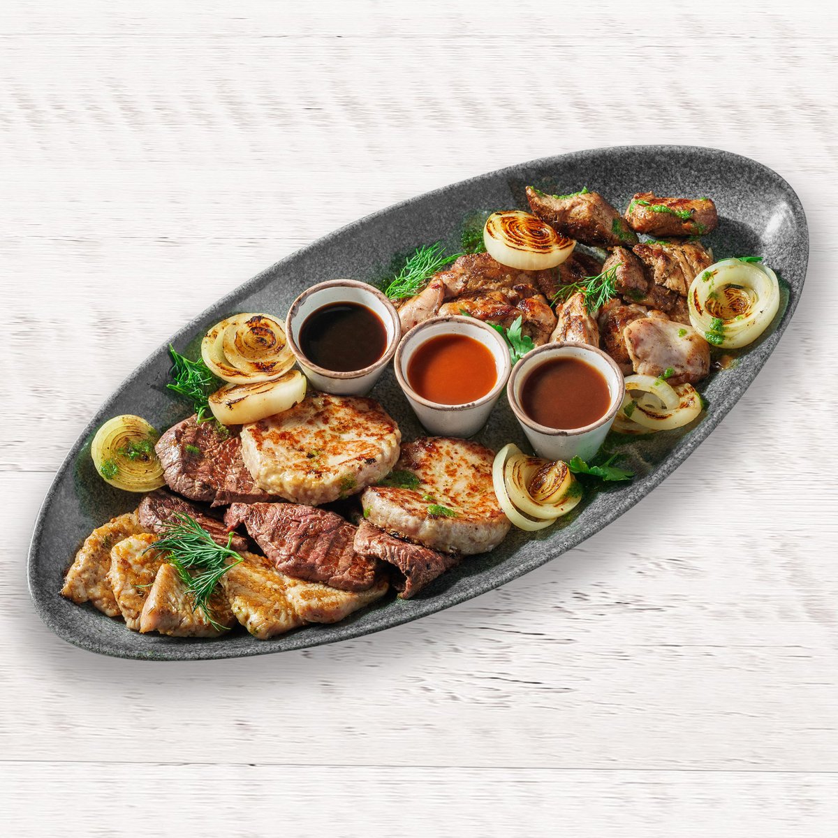 Из двух видов мяса с картофелем гриль и сливочным соусом