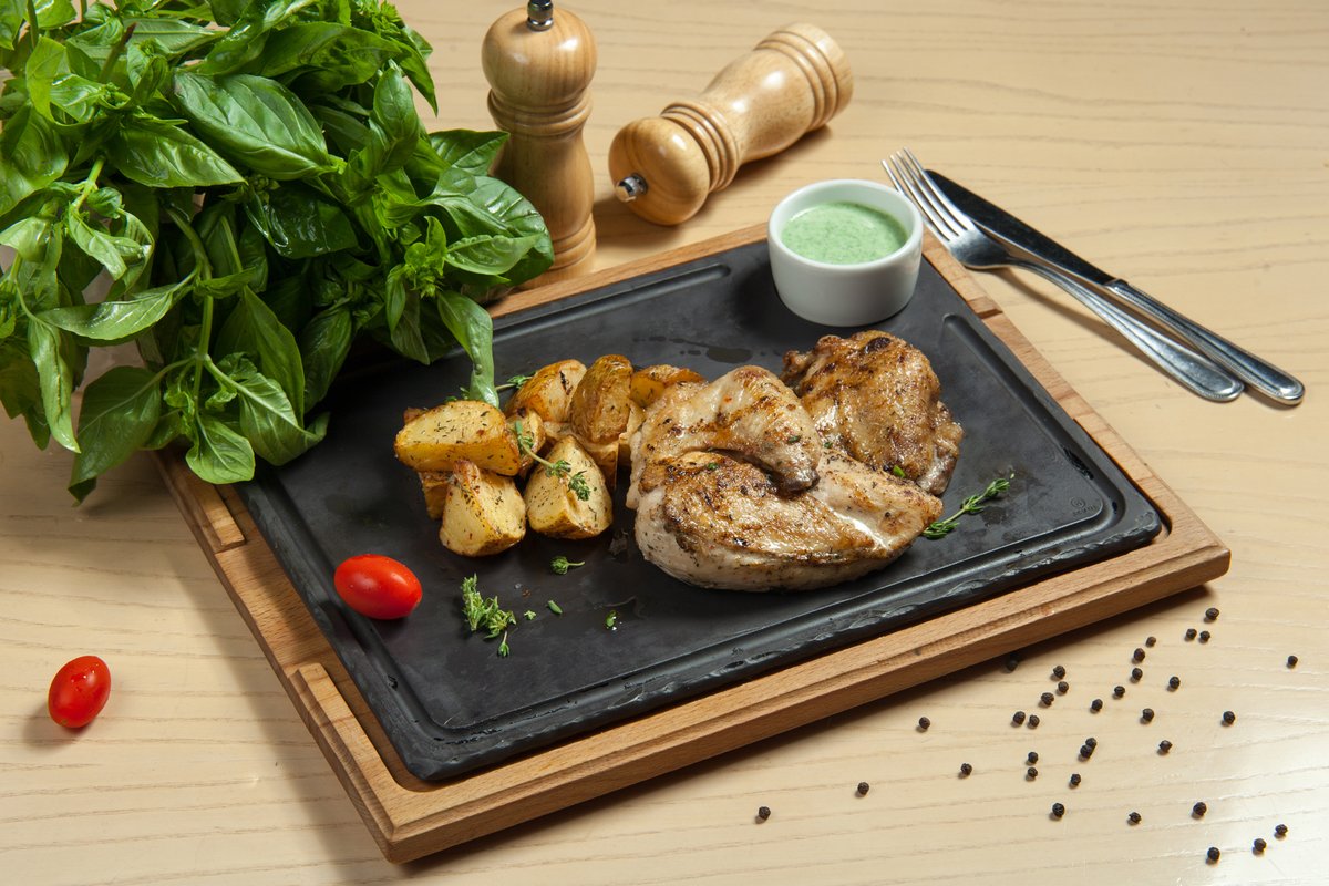 Цыпленок гриль со шпинатом и сливочным соусом и картофелем