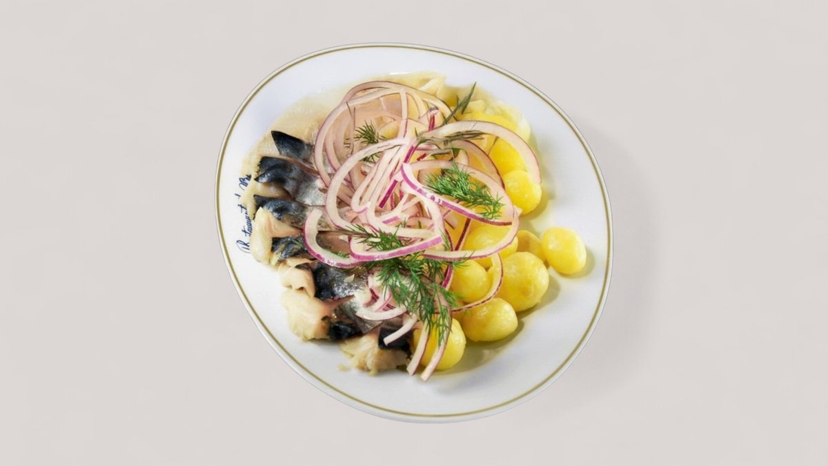Слабосоленная сельдь с ароматным отварным картфелем, маринованным луком,квашенной капустой,соленными огурцами,ржанным хлебом и зеленым луком.