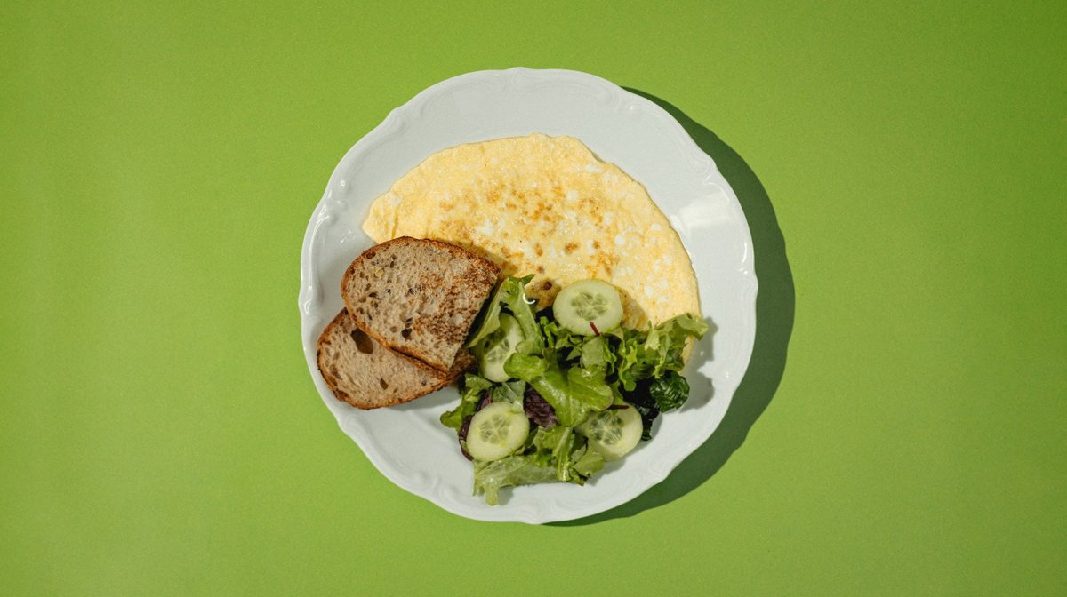 Омлет с сыром и ветчиной, микс салата, и без глютеновый хлеб