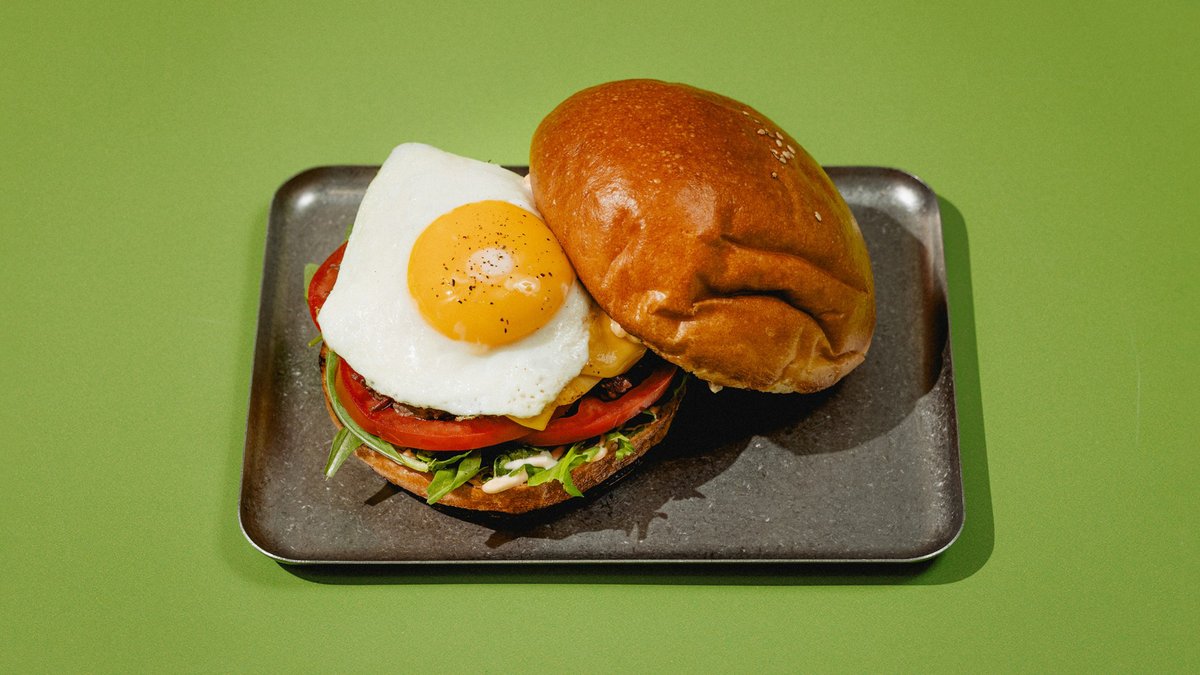 Бургер с томленной говядиной и глазуньей