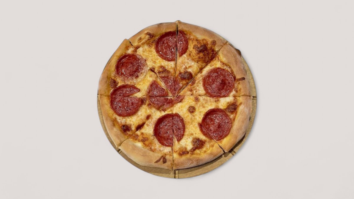 Пицца «Пепперони» — тонкое тесто, томатный соус, тягучая моцарелла и пикантная колбаса пепперони. Сытная, ароматная и с лёгкой остринкой 🍕