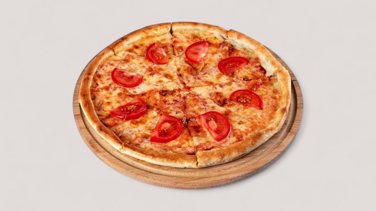Пицца «Маргарита» — тонкое тесто, сочный томатный соус и тягучая моцарелла. Нежная, ароматная и любимая классика 🍕