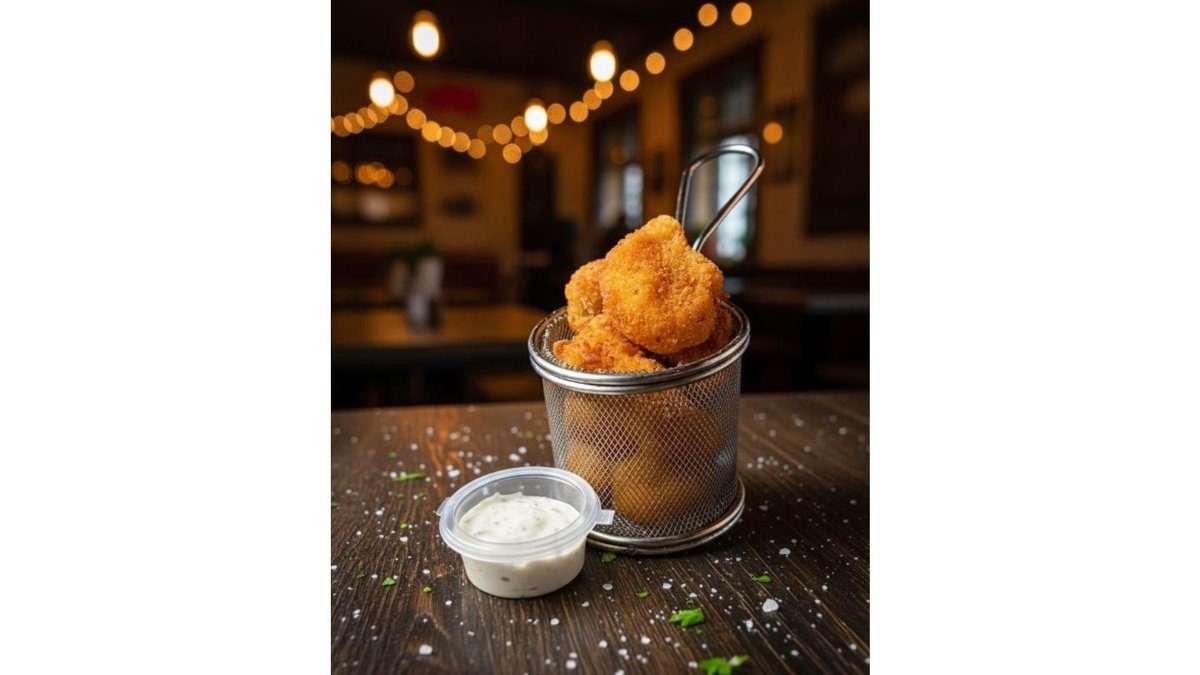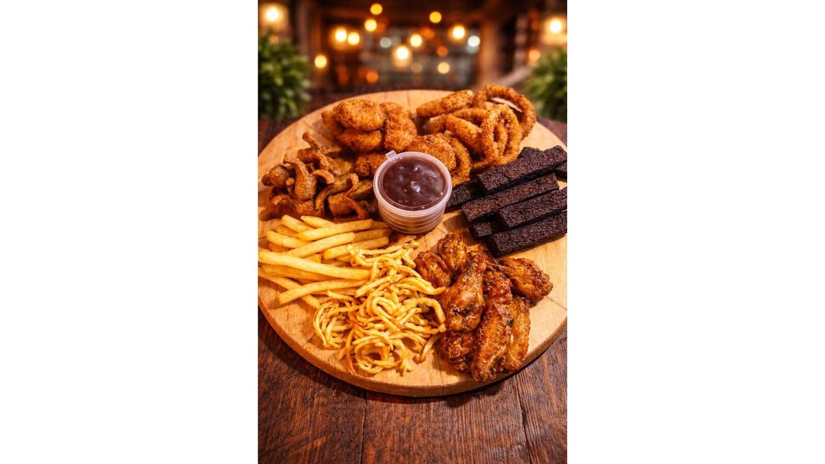 Гренки, куриные крылья, куриные колбаски, жареный чечел, наггетсы, фри, луковые кольца