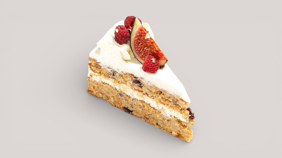 Морковный торт сочный морковный бисквит с пряностями и грецкими орехами, с апельсиновой пропиткой и сливочным крем-чизом *Некоторый ягоды для украшения могут отсутствовать или быть заменены на другие в связи с сезонностью*