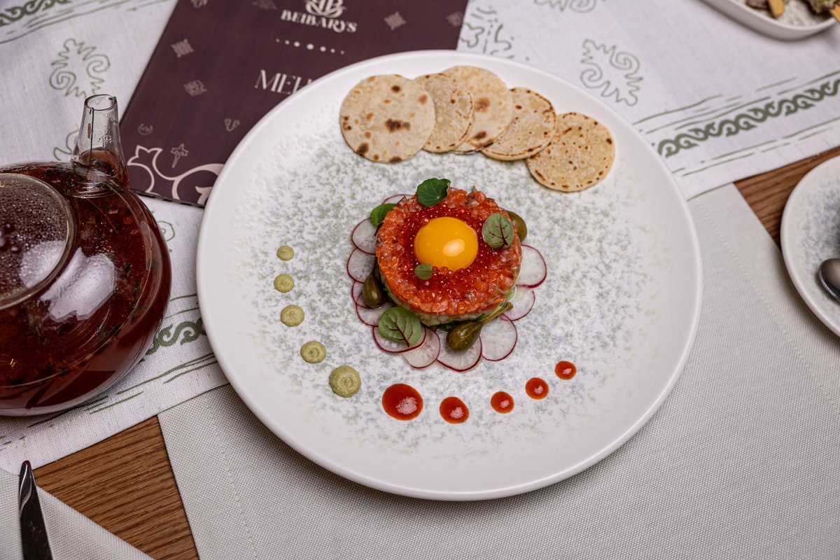 хрустящие тарталетки с пастрами из конины и сливочным муссом