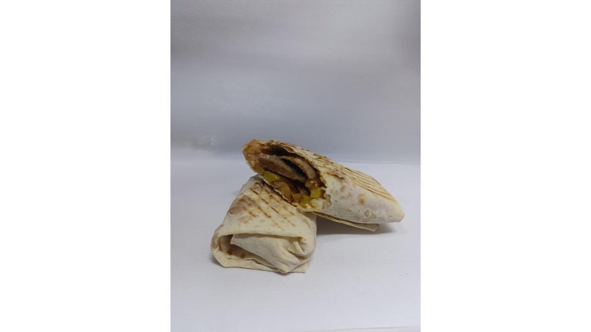 Lavash, beef, fries, mayonnaise, ketchup, cucumber, tomato, garlic sauce