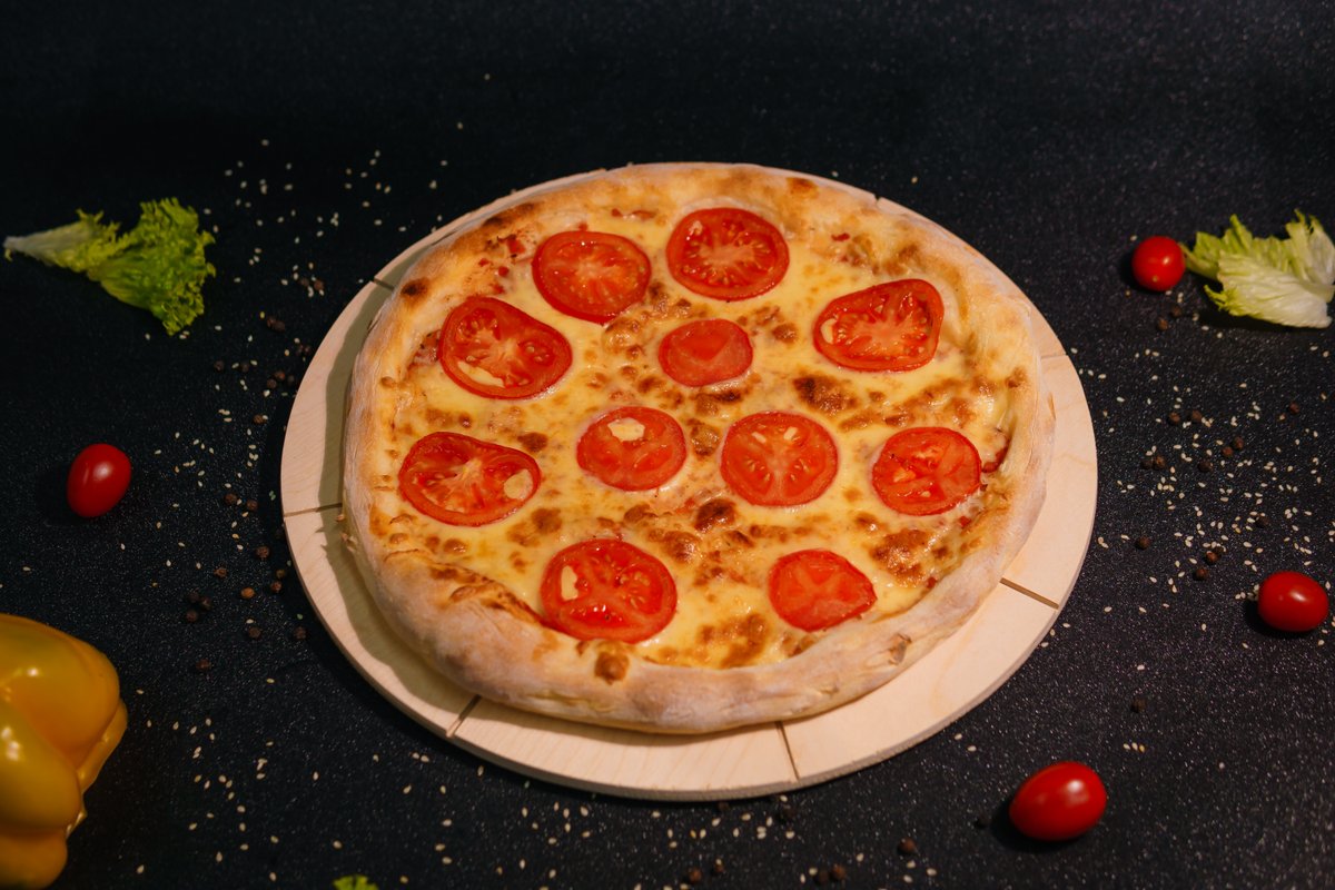 Dough, pizza sauce, mozzarella, corn, lettuce, chicken fillet, mushrooms, cherry tomatoes 4 Seasons Dough, pizza sauce, mozzarella, tomatoes, mushrooms, minced meat, sausage