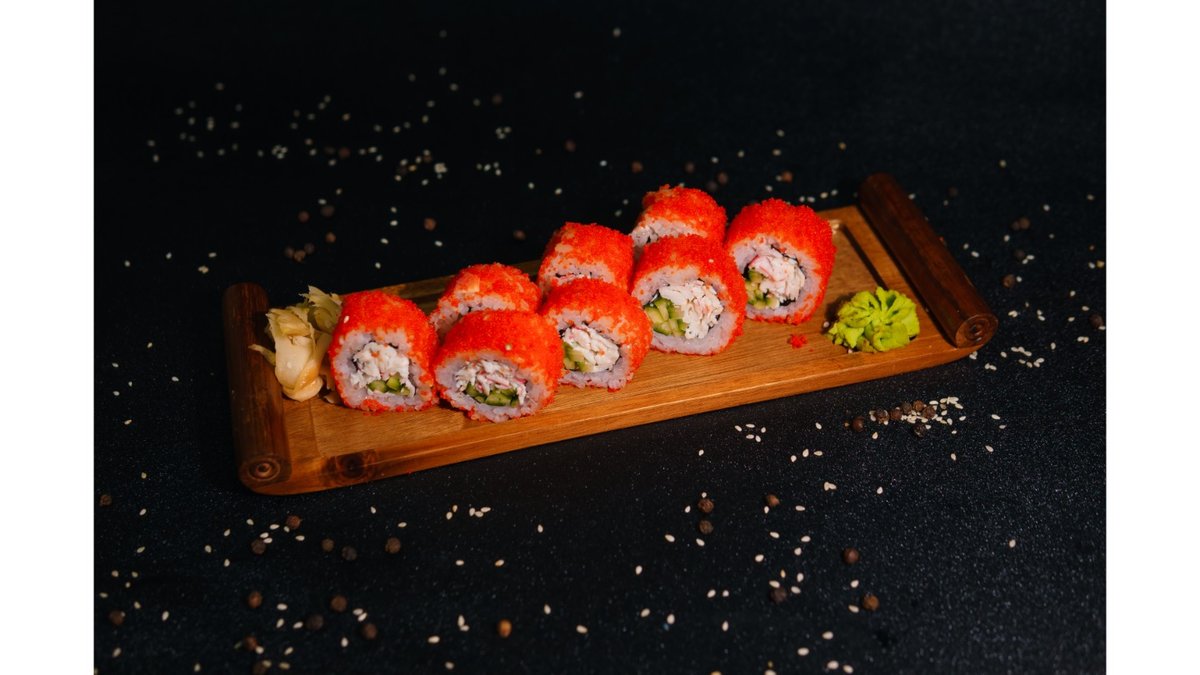 Nori, rice, crab, cucumber, tobiko
