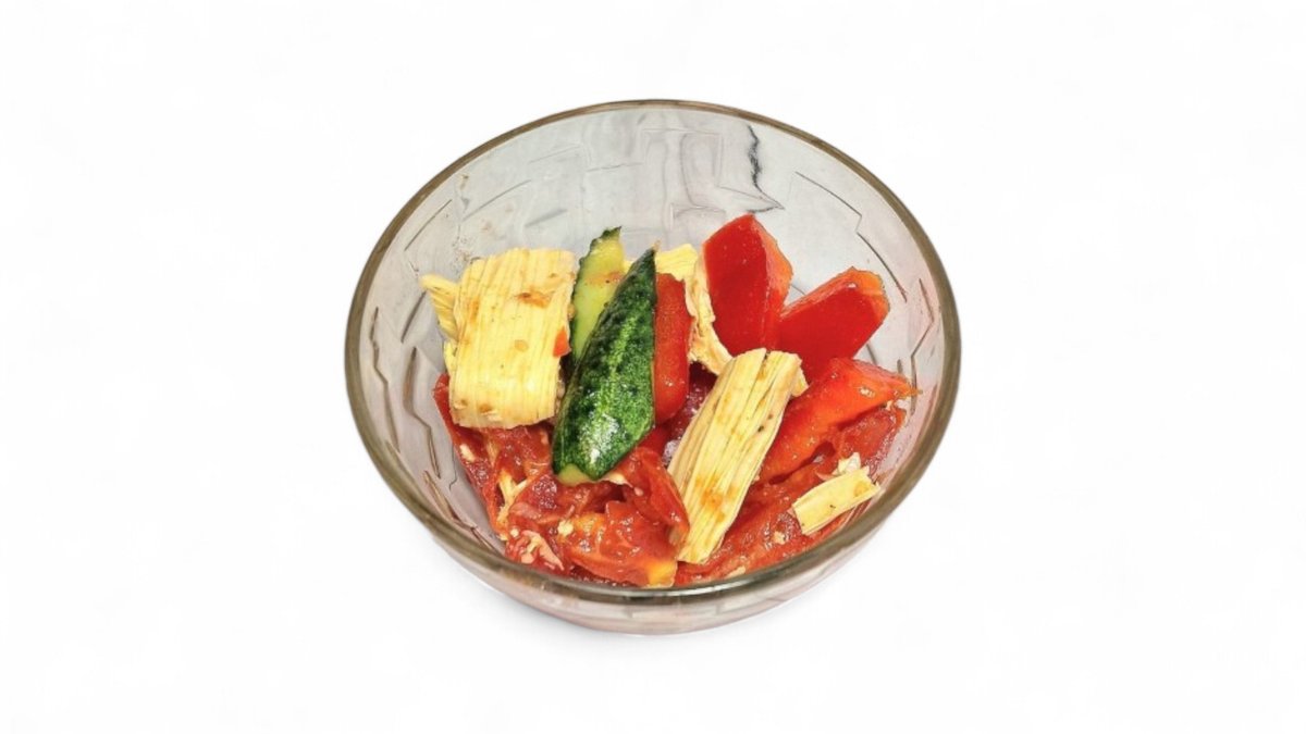 Лосось ,огурец свежий,помидор,водоросли"чука",кукуруза,лист салата.(200).Расчет калорийности на порцию готового продукта энергетическая ценность на одно изделие г жиры в готовом издел, г 2.6 белки в готовом издел, г 4.6 углеводы в готовом издел, г 6.9 кКал 138.7 кДж 290.2