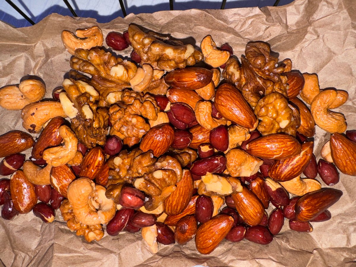 Обжаренные баклажаны, томаты черри, соус сладкий чили, терияки, кешью, кинза