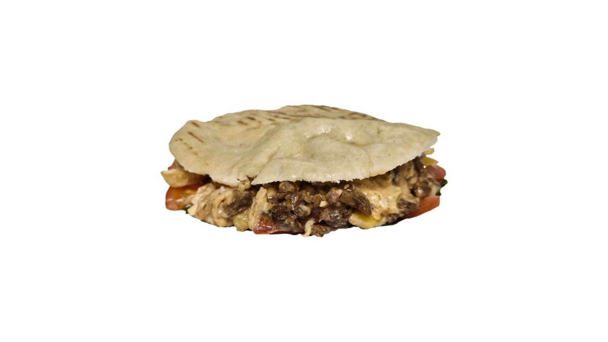 Сочная говядина в пите с сыром, свежими помидорами, фри и фирменным соусом