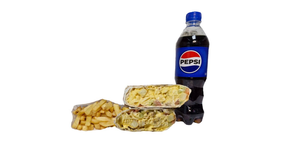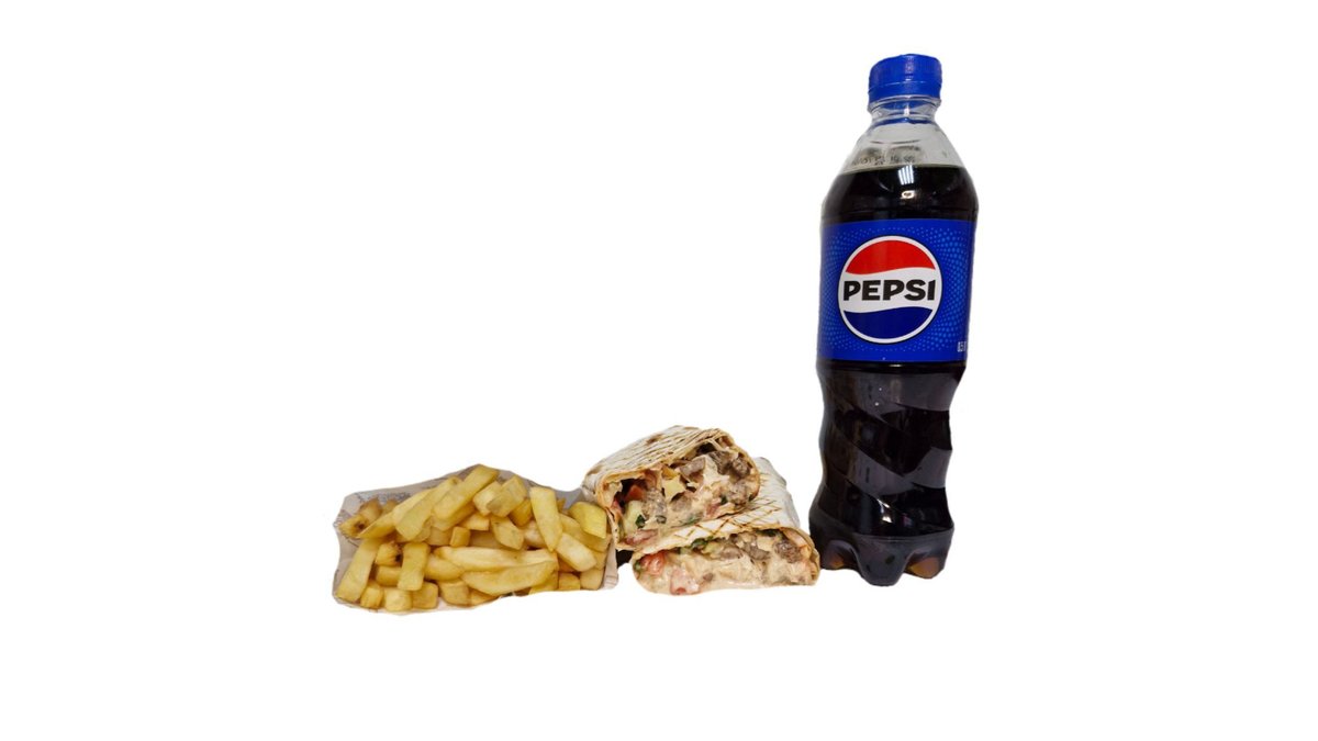 Сытное комбо с сырным донером, картофелем фри и напиток (пепси , севенап, миринда )