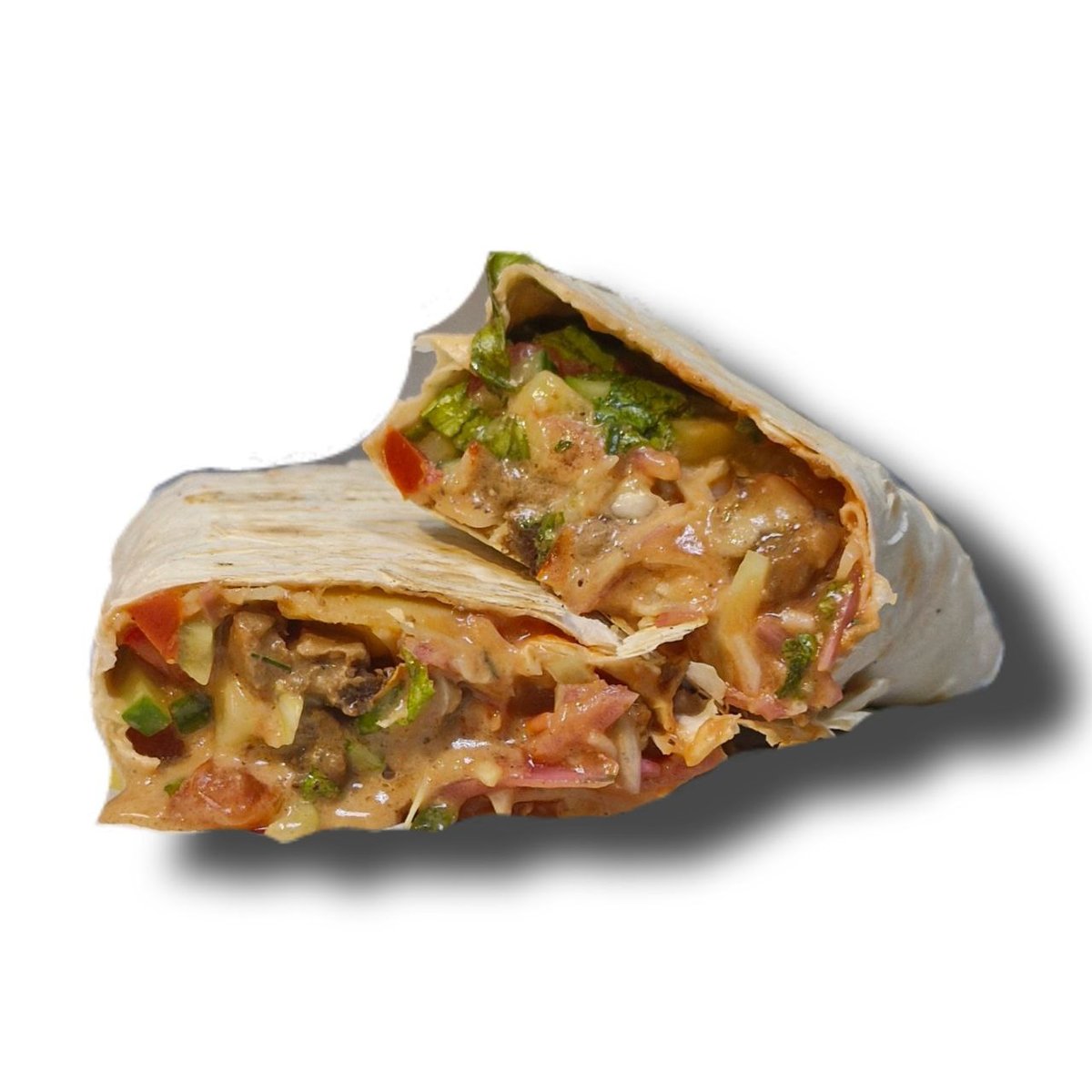 Шаурма с сочной куриной грудкой, золотистым фри и корейской морковью, заправленный фирменным соусом