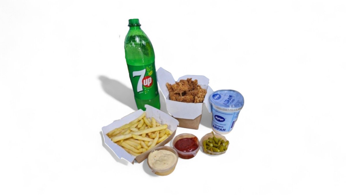 Сытное комбо с куриным донером, картофелем фри и напиток (пепси , миринда , севенап)