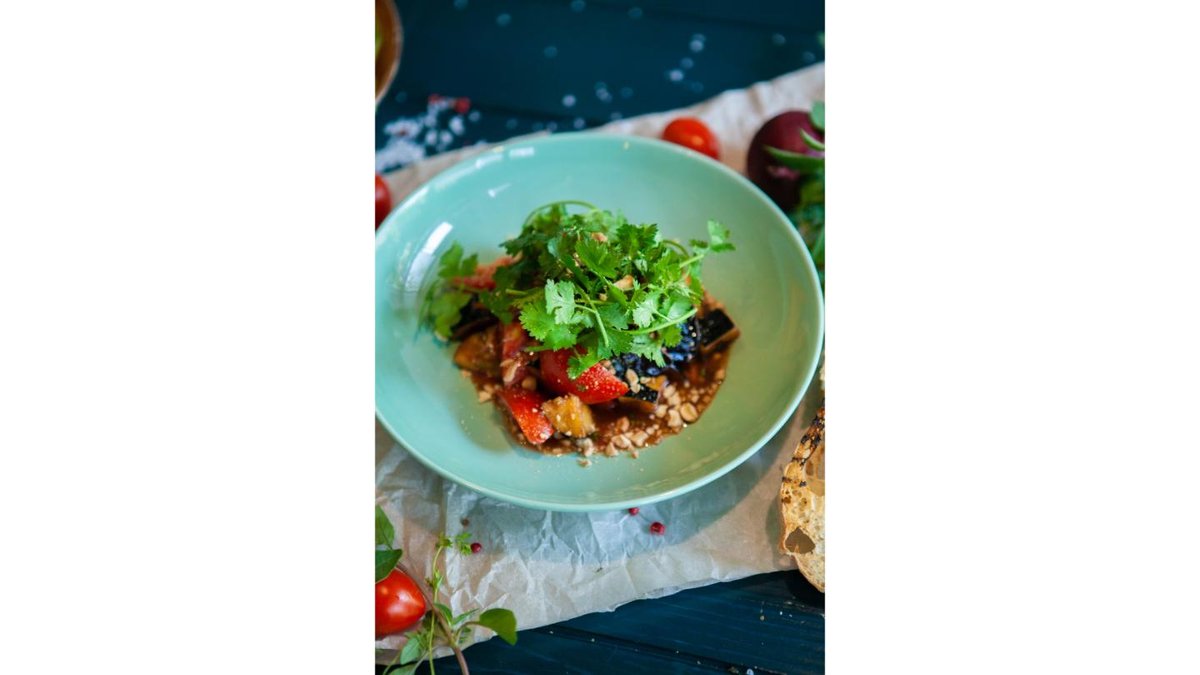 Салат с хрустящими баклажанами