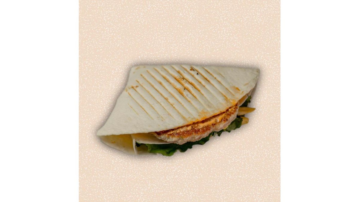 Tortilla, chicken patty, signature sauce, chinese cabbage, tomato, gherkins, french fries, cheddar cheese